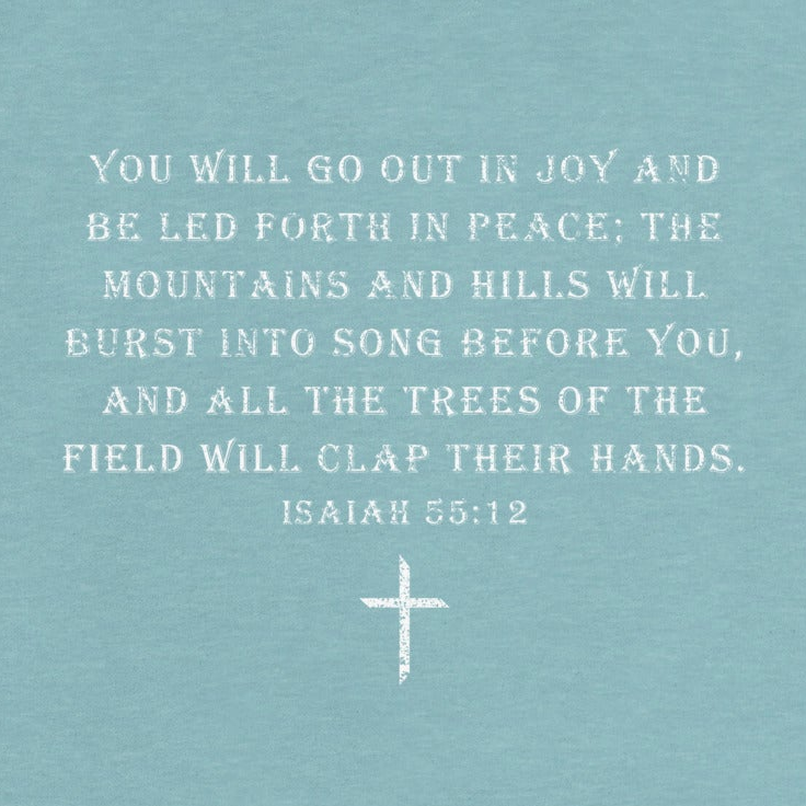 "You will go out in joy and be led forth in peace; the mountains and hills will burst into song before you, and all the trees of the field will clap their hands." - Isaiah 55:12